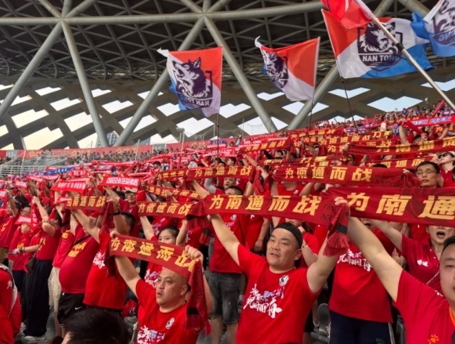 本赛季起步阶段,无锡吴钩、苏州东吴和海门珂缔缘等江苏职业俱乐部的场均观众只有几百人。苏超影响力“外溢”之后,这些球队的现场观众轻松突破四位数,海门体育中心更是多次出现7000人以上的火爆场面。在南通VS泰州的终极之战前,海门珂缔缘完成了本赛季中乙收官战(VS贵州筑城竞技),即苏超决赛前的“热身赛”,海门体育中心涌进了10123名观众,这在中乙赛场是不可想象的事情。